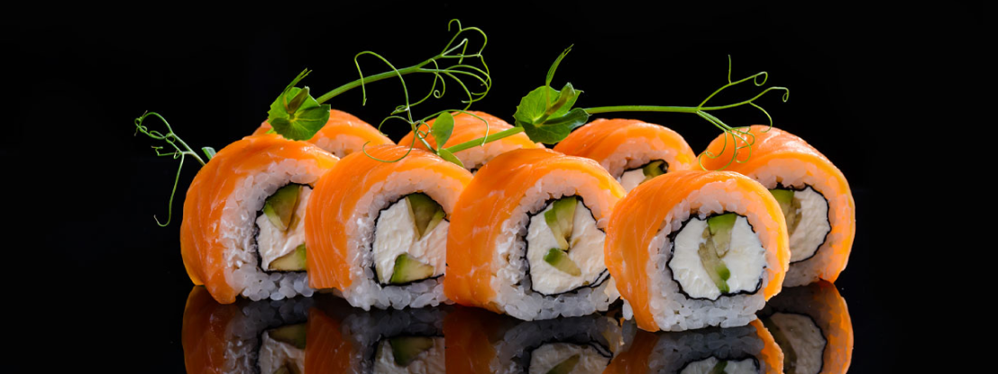 Состав: Сыр моцарелла, креветки, бекон, дайкон, соус унаги, базилик.